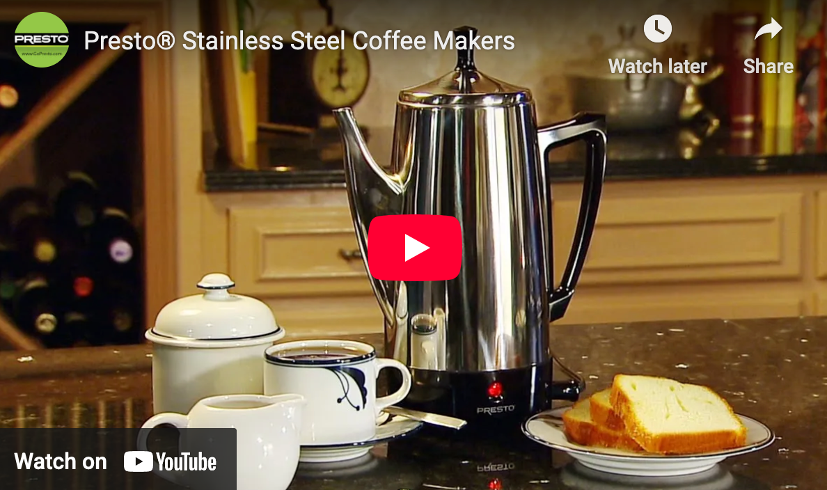 Brews robust percolator coffee — hot and rich! Coffee percolates through the grounds multiple times for a more aromatic, intense coffee.