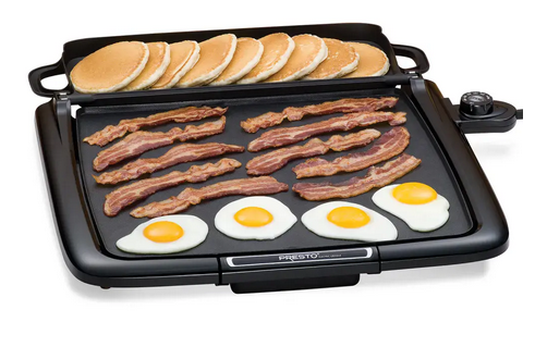 Efficient “square” shape holds more pancakes, eggs, and sandwiches than conventional rectangular griddles.