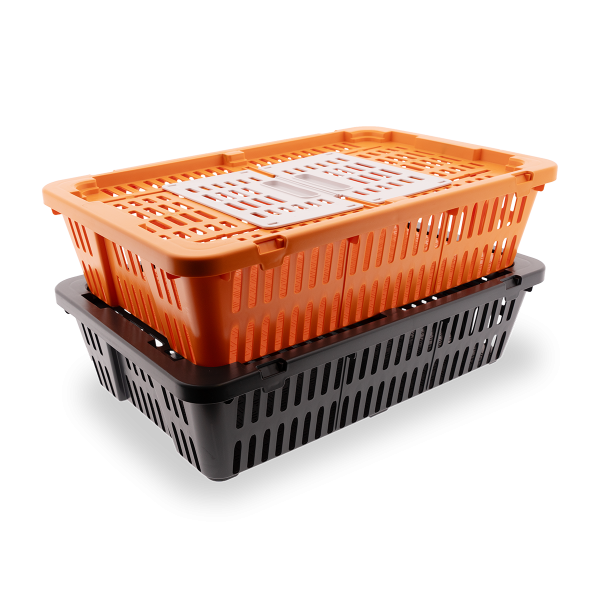 The Transport Coop for Quail & Pigeons ensures safe, stress-free transport of your birds, whether to shows, markets, or between locations. Available in two attractive colors (Orange and Black), this box offers security, ventilation, and ease of handling for poultry enthusiasts and professional breeders alike.