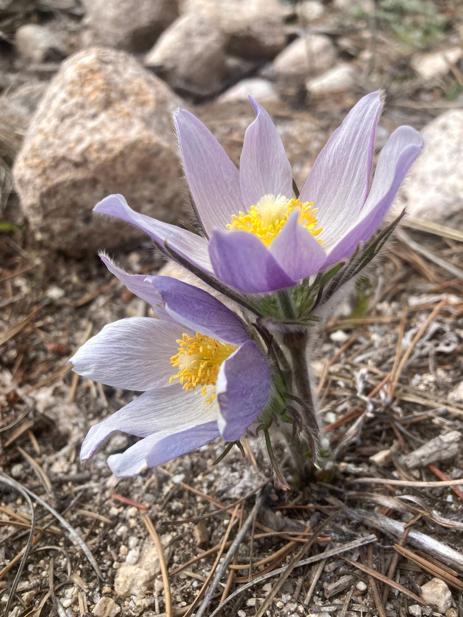 American Pasque Flower is a delicate, early-blooming perennial whose soft, bell-shaped blossoms appear at the first touch of spring. Silvery-violet petals surround bright yellow stamens, welcoming the end of winter with an unassuming grace. As the flowers open, finely divided, silky-haired foliage unfurls beside them, adding texture and a soft, silvery-green glow to the landscape. Blooming so early in the season, it provides an essential source of nectar for emerging pollinators, especially bees and small flies, supporting wildlife at a time when few other plants are awake.